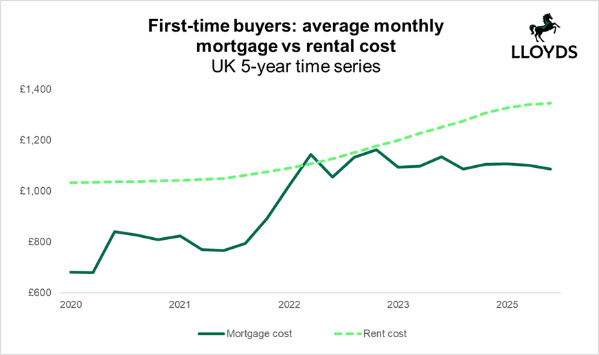 Renting is, on average, £259 per month more expensive than typical mortgage costs for first-time buyers, a difference that’s increased by over a third (36%) over the last year.